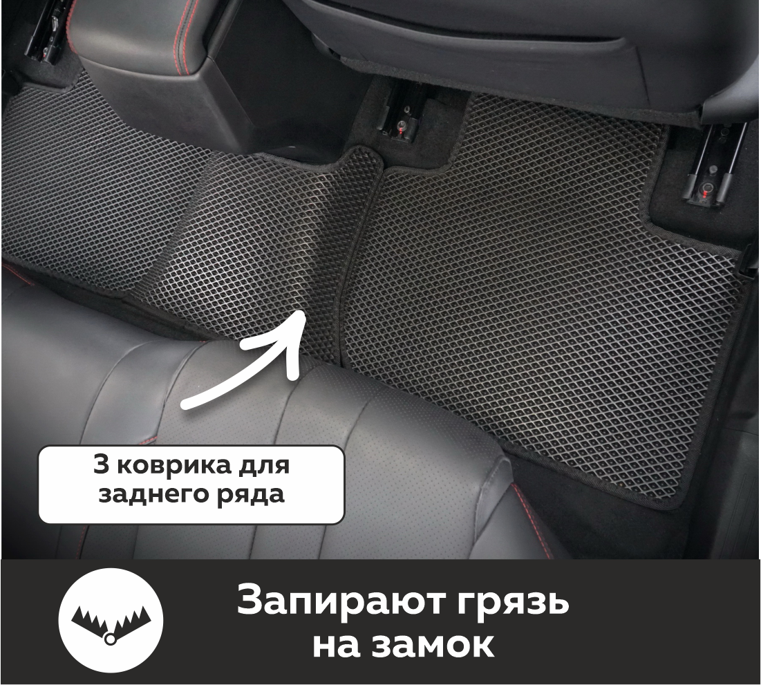 Изделия EVA имеют специальную ячеистую структуру (ячейки глубиной 8 мм), которая эффективно задерживает грязь и воду, оставляя вашу обувь и поверхность обивки салона или багажника абсолютно чистыми. Также эти ячейки очень легко и быстро очищаются без применения специальных инструментов, в том числе, при помощи бесконтактной мойки.