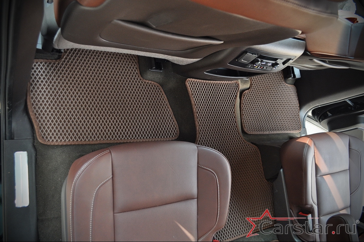 Автомобильные коврики EVA Cadillac Escalade IV 3 ряда (2014->) – это долговечные, удобные и универсальные аксессуары, которые помогут надежно защитить салон и багажник вашего авто от пыли, грязи и влаги в любое время года.