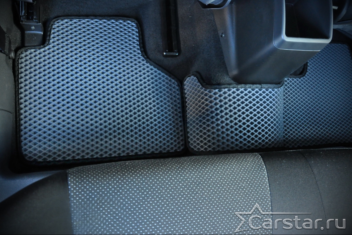 Толщина ковриков EVA составляет 10-12 мм. Глубина ячеек 7-8 мм. Такая толщина ковриков позволяет им служить довольно долго, не протираясь до 3 лет. А благодаря такой глубине ячеек коврик EVA площадью 1 кв.м. способен захватить около 3,5 л жидкости, сохраняя в чистоте вашу обувь и обивку салона.