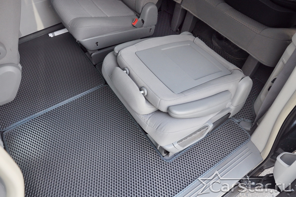 Автомобильные коврики EVA Chrysler Grand Voyager V (2008->) 2 ряд: кресла 1+1 не убираются в пол – это долговечные, удобные и универсальные аксессуары, которые помогут надежно защитить салон и багажник вашего авто от пыли, грязи и влаги в любое время года.