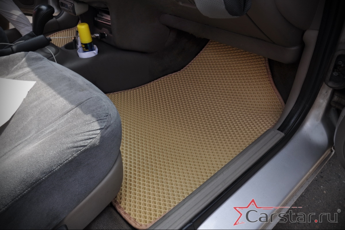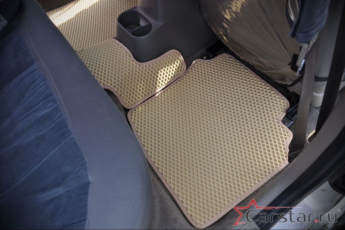 Толщина ковриков EVA составляет 10-12 мм. Глубина ячеек 7-8 мм. Такая толщина ковриков позволяет им служить довольно долго, не протираясь до 3 лет. А благодаря такой глубине ячеек коврик EVA площадью 1 кв.м. способен захватить около 3,5 л жидкости, сохраняя в чистоте вашу обувь и обивку салона.