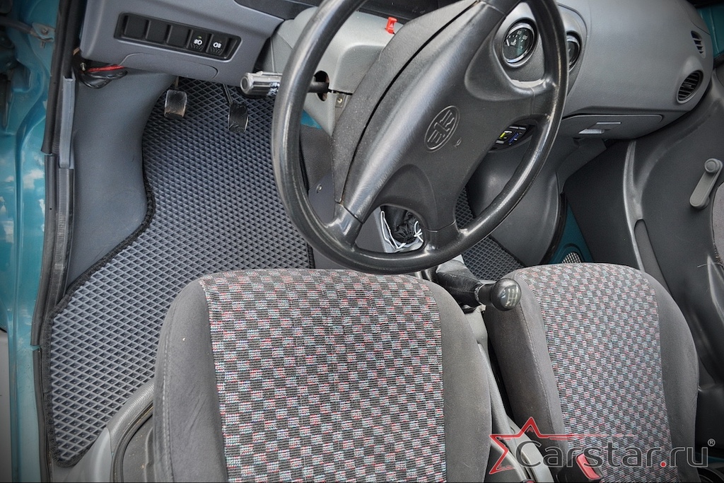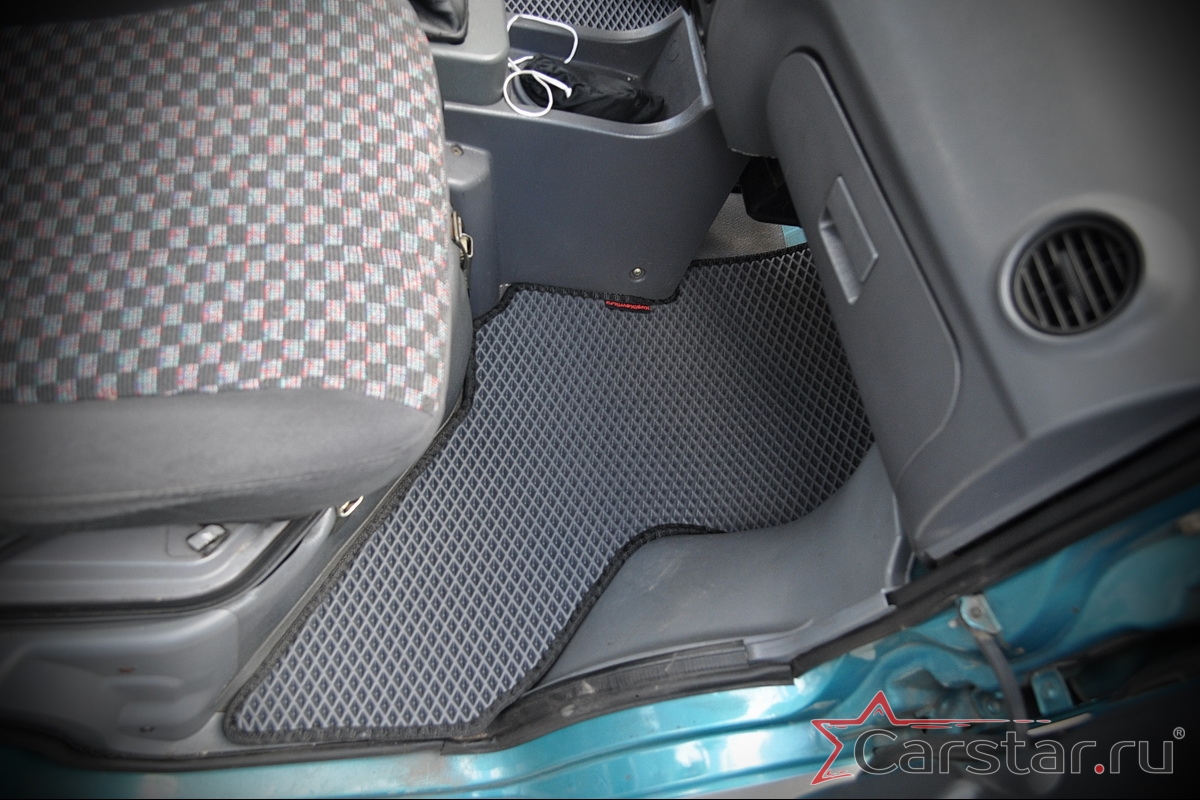 Толщина ковриков EVA составляет 10-12 мм. Глубина ячеек 7-8 мм. Такая толщина ковриков позволяет им служить довольно долго, не протираясь до 3 лет. А благодаря такой глубине ячеек коврик EVA площадью 1 кв.м. способен захватить около 3,5 л жидкости, сохраняя в чистоте вашу обувь и обивку салона.
