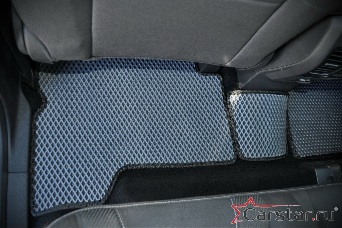 Толщина ковриков EVA составляет 10-12 мм. Глубина ячеек 7-8 мм. Такая толщина ковриков позволяет им служить довольно долго, не протираясь до 3 лет. А благодаря такой глубине ячеек коврик EVA площадью 1 кв.м. способен захватить около 3,5 л жидкости, сохраняя в чистоте вашу обувь и обивку салона.