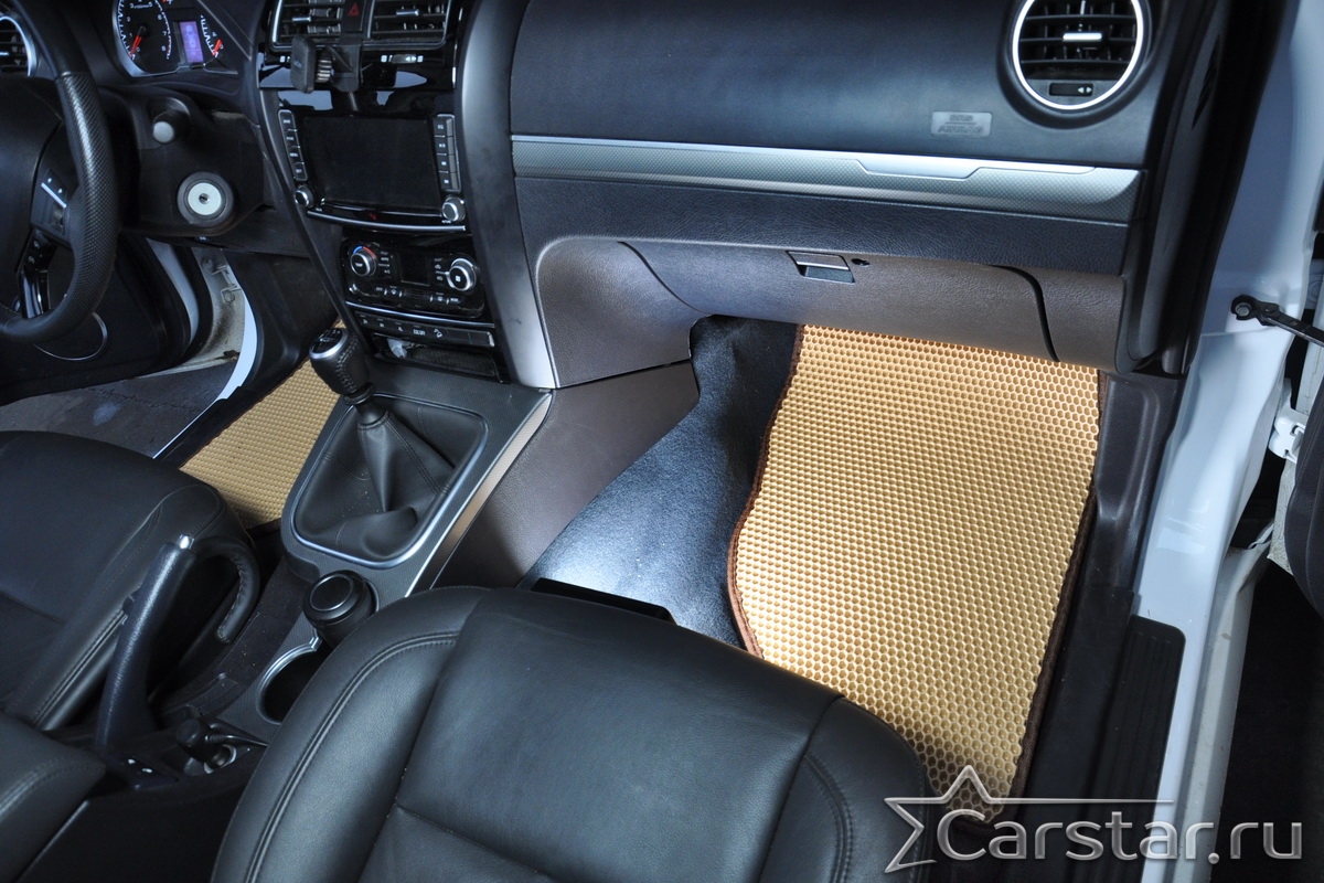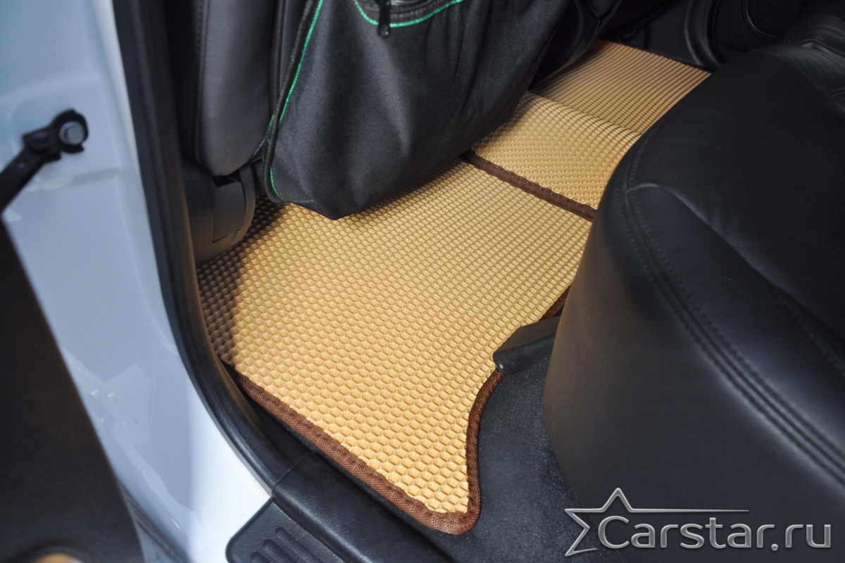 Толщина ковриков EVA составляет 10-12 мм. Глубина ячеек 7-8 мм. Такая толщина ковриков позволяет им служить довольно долго, не протираясь до 3 лет. А благодаря такой глубине ячеек коврик EVA площадью 1 кв.м. способен захватить около 3,5 л жидкости, сохраняя в чистоте вашу обувь и обивку салона.