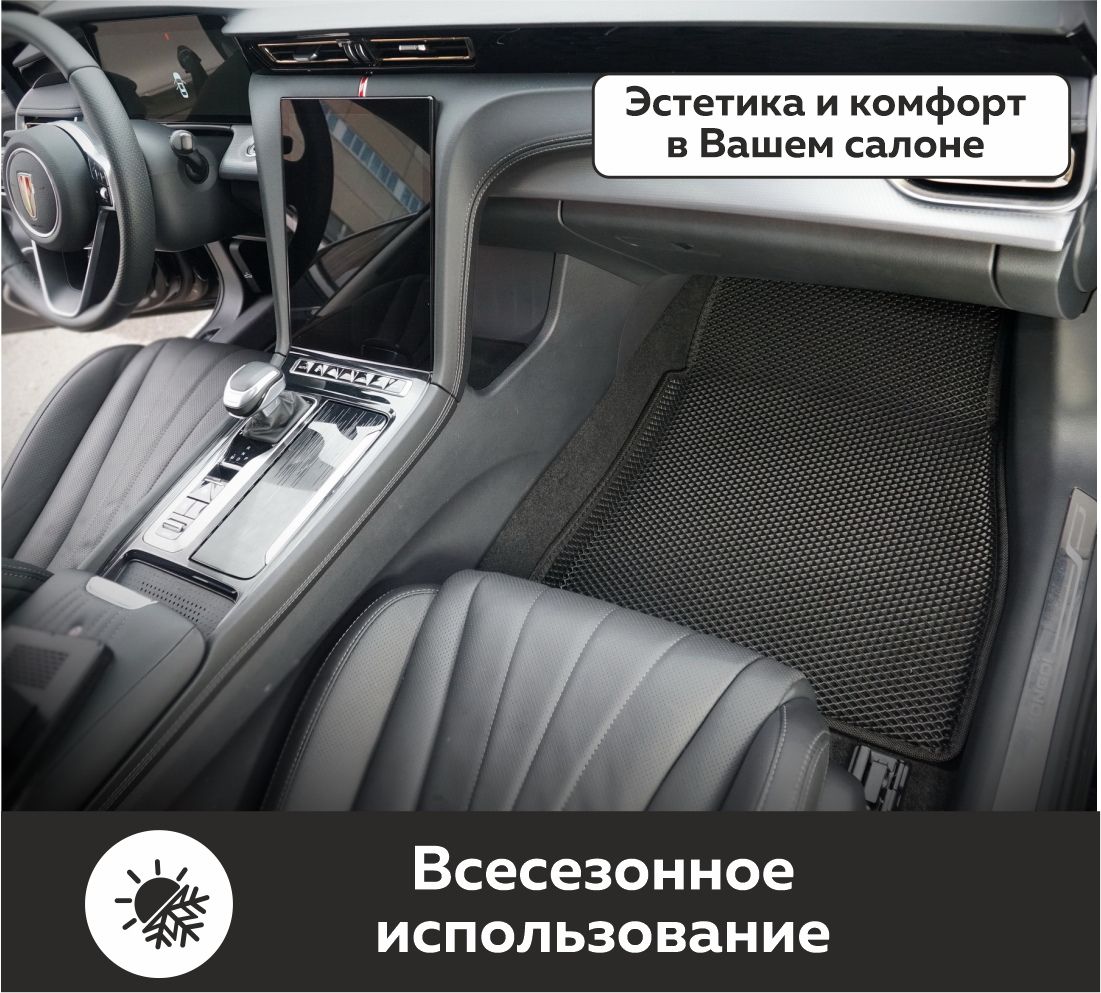 Автомобильные коврики EVA Hongqi H5 II (2022->) 3D EVA MAX – это долговечные, удобные и универсальные аксессуары, которые помогут надежно защитить салон и багажник вашего авто от пыли, грязи и влаги в любое время года.