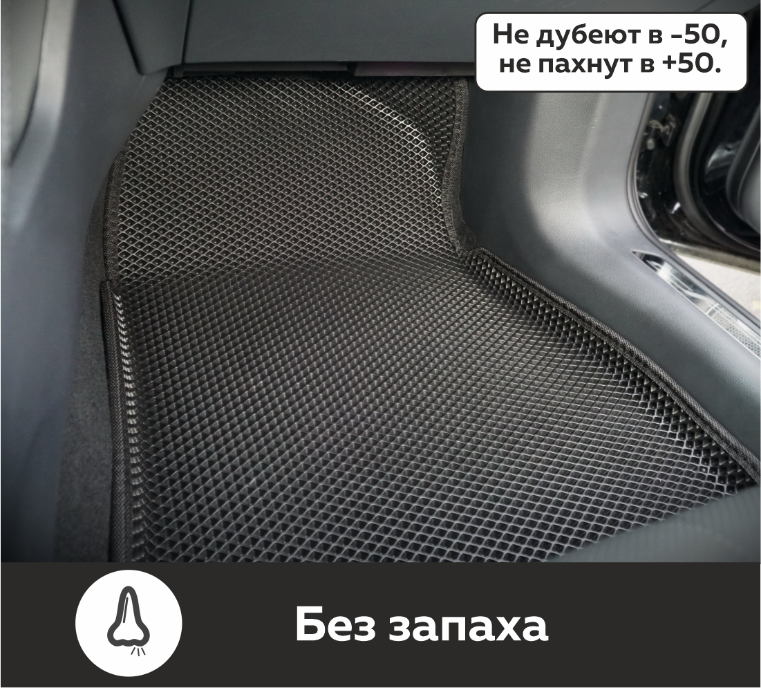 Автоковрики EVA производятся из инновационного экологически чистого материала, обладающего высочайшей износостойкостью, устойчивостью к экстремальным температурам (от +40 С до -40 С) и агрессивным химреагентам. Они в 4 раза легче обычных резиновых аналогов, а чрезвычайно плотная структура обеспечивает им безупречную гидро- и шумоизоляцию!