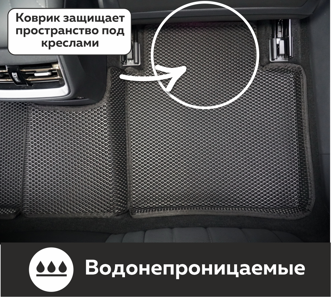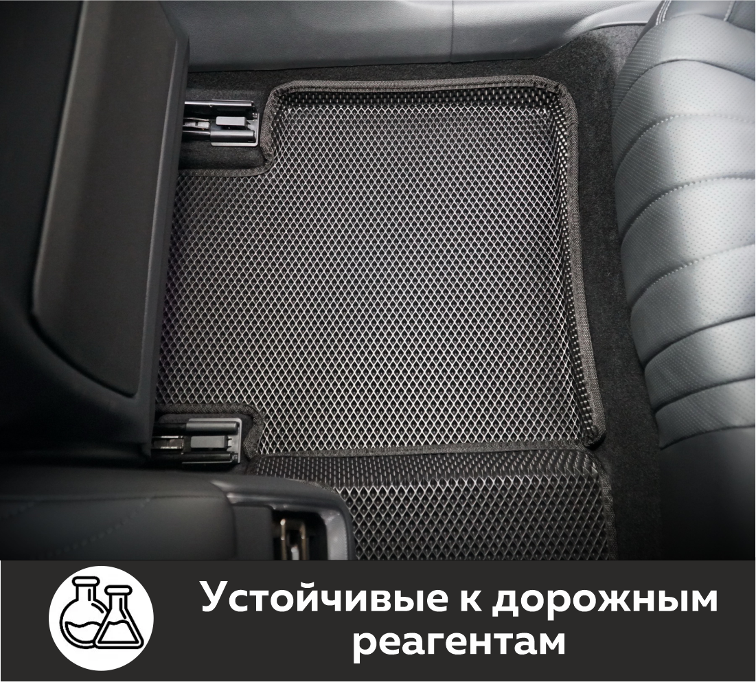 Изделия EVA имеют специальную ячеистую структуру (ячейки глубиной 8 мм), которая эффективно задерживает грязь и воду, оставляя вашу обувь и поверхность обивки салона или багажника абсолютно чистыми. Также эти ячейки очень легко и быстро очищаются без применения специальных инструментов, в том числе, при помощи бесконтактной мойки.