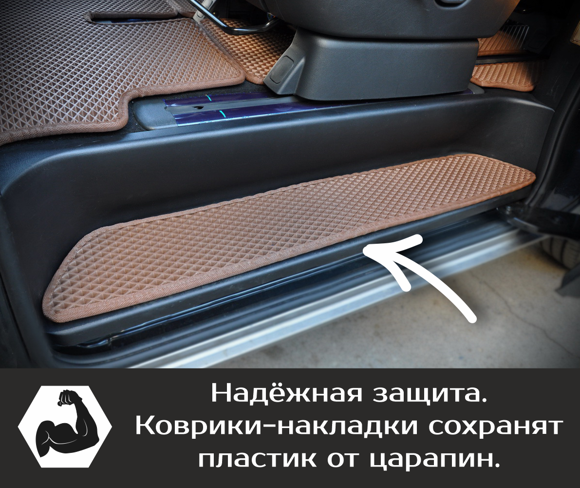 Накладки на пороги гармонично сочетаются с салонными ковриками EVA, дополняя друг друга.