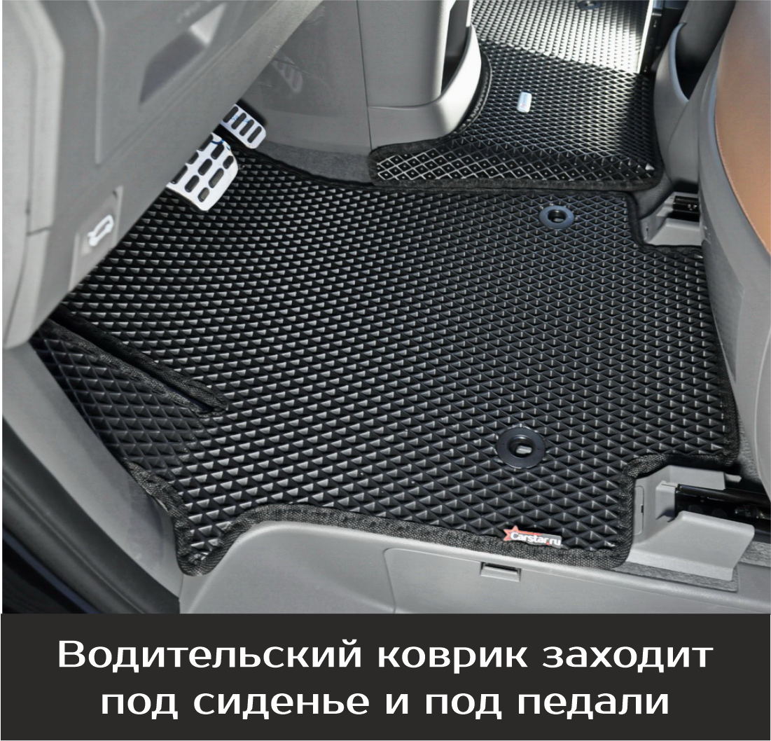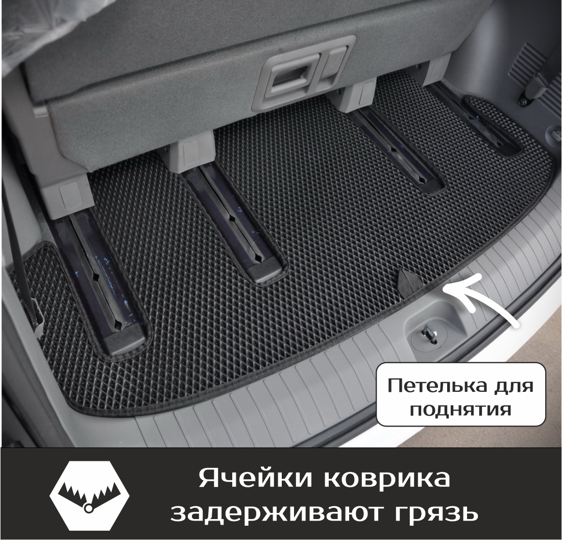 Автомобильные коврики EVA Hyundai Staria 7 мест (2021->) – это долговечные, удобные и универсальные аксессуары, которые помогут надежно защитить салон и багажник вашего авто от пыли, грязи и влаги в любое время года.