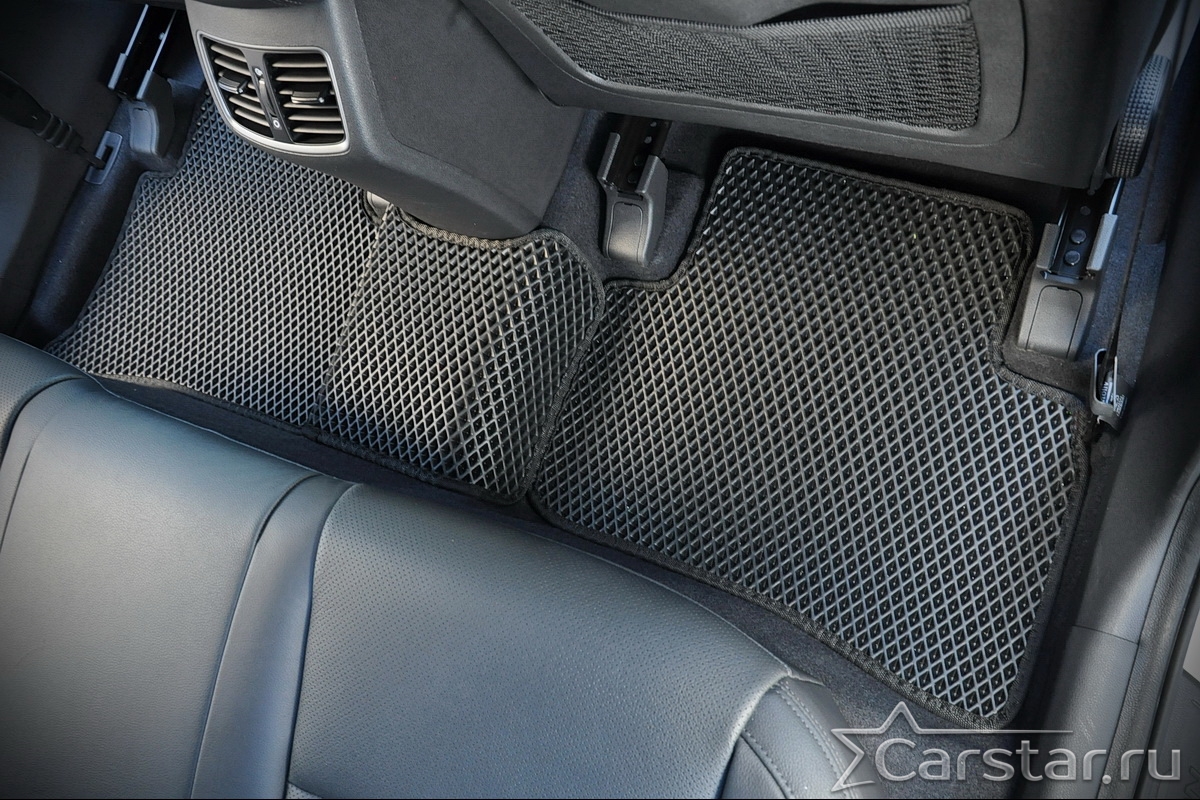 Толщина ковриков EVA составляет 10-12 мм. Глубина ячеек 7-8 мм. Такая толщина ковриков позволяет им служить довольно долго, не протираясь до 3 лет. А благодаря такой глубине ячеек коврик EVA площадью 1 кв.м. способен захватить около 3,5 л жидкости, сохраняя в чистоте вашу обувь и обивку салона.