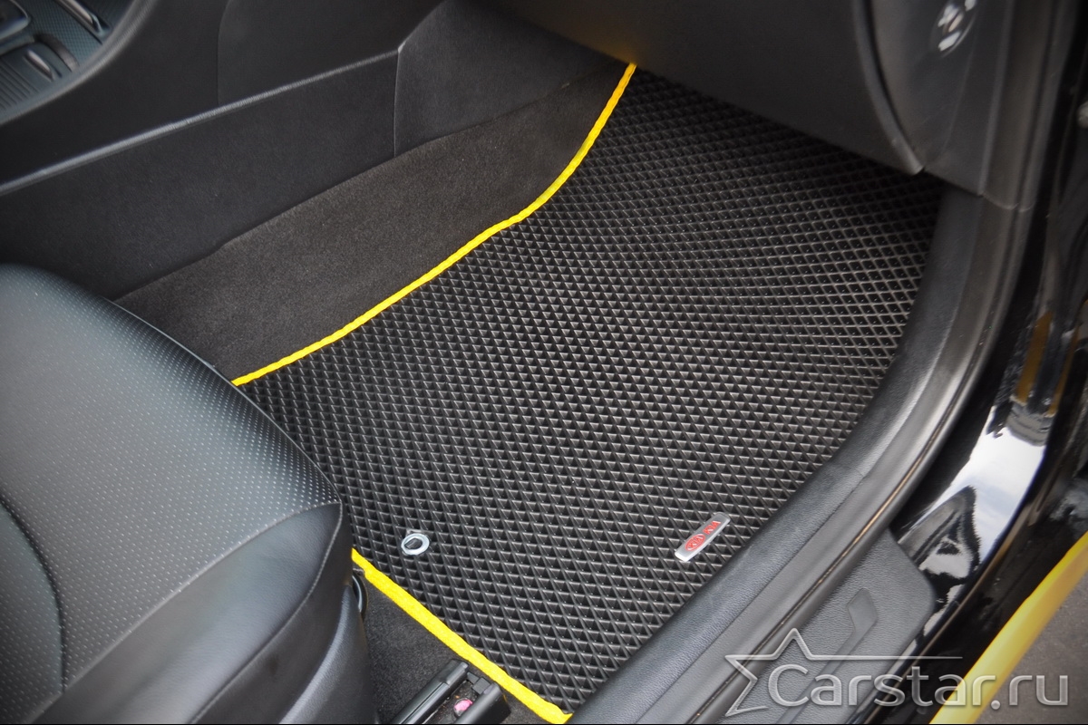 Автомобильные коврики EVA прекрасно подходят для всех существующих марок и моделей авто, здесь вы сможете заказать оптимальный аксессуар любого возможного цвета. По размерам они больше, чем стандартные резиновые коврики, поэтому покрывают максимальную площадь пола в салоне. А двойная система креплений (клипсы и липучки) позволяет надежно зафиксировать коврики в нужном месте.