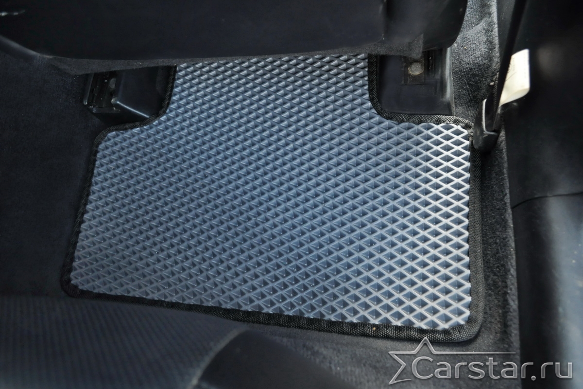 Толщина ковриков EVA составляет 10-12 мм. Глубина ячеек 7-8 мм. Такая толщина ковриков позволяет им служить довольно долго, не протираясь до 3 лет. А благодаря такой глубине ячеек коврик EVA площадью 1 кв.м. способен захватить около 3,5 л жидкости, сохраняя в чистоте вашу обувь и обивку салона.
