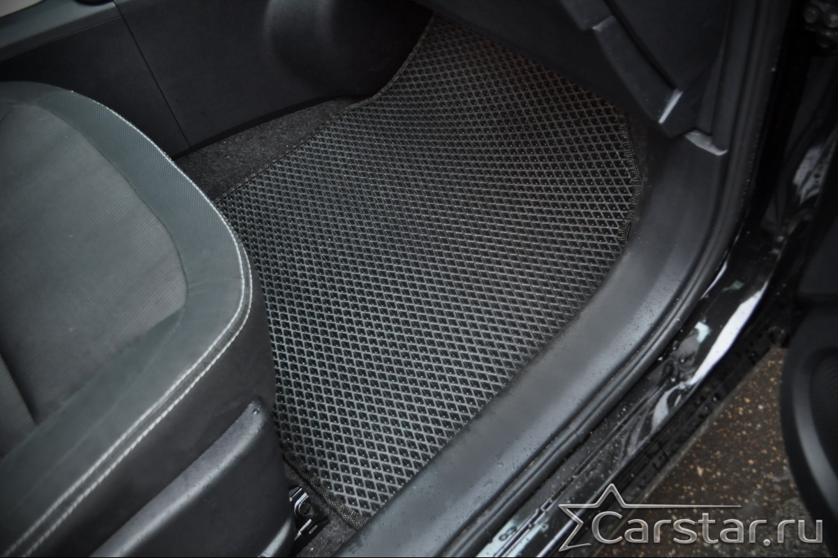 Автомобильные коврики EVA прекрасно подходят для всех существующих марок и моделей авто, здесь вы сможете заказать оптимальный аксессуар любого возможного цвета. По размерам они больше, чем стандартные резиновые коврики, поэтому покрывают максимальную площадь пола в салоне. А двойная система креплений (клипсы и липучки) позволяет надежно зафиксировать коврики в нужном месте.