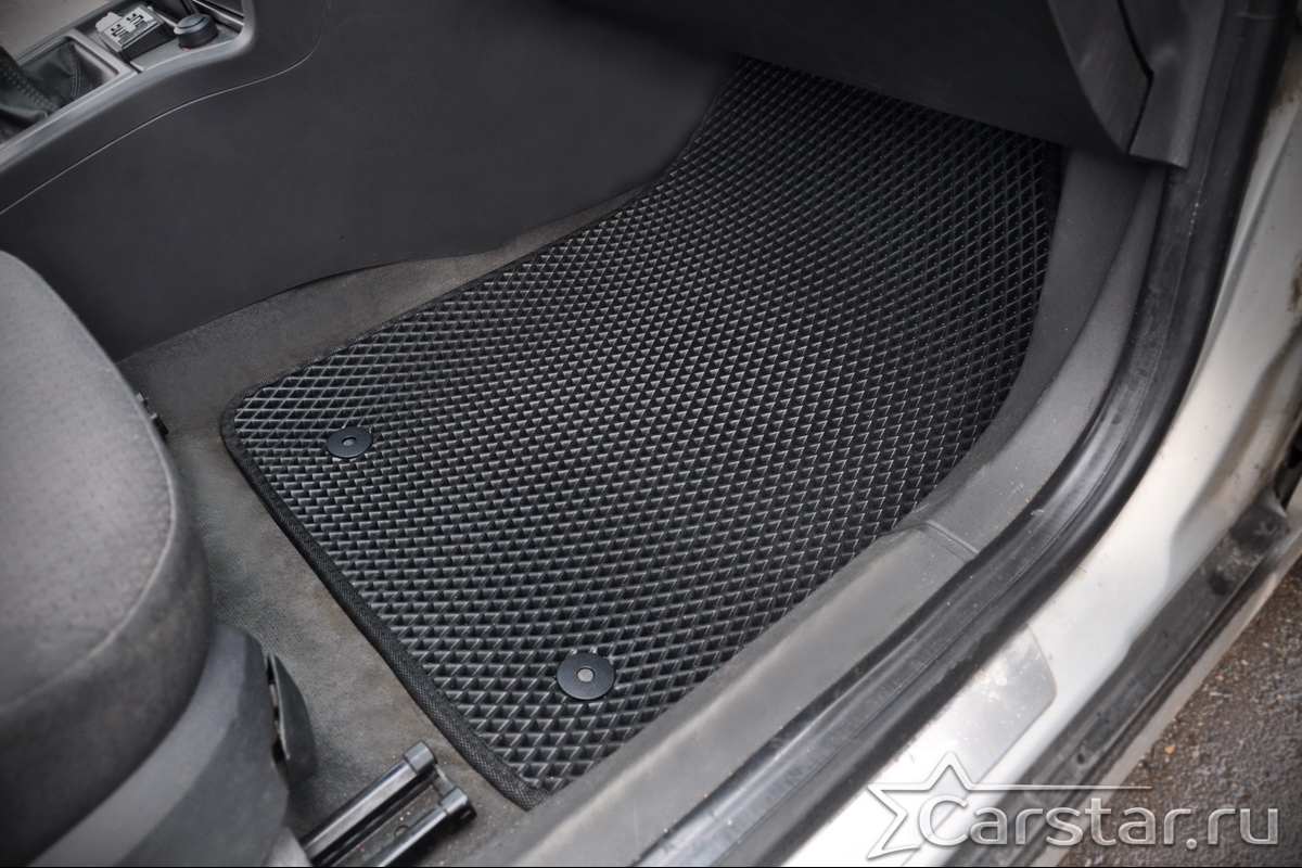 Толщина ковриков EVA составляет 10-12 мм. Глубина ячеек 7-8 мм. Такая толщина ковриков позволяет им служить довольно долго, не протираясь до 3 лет. А благодаря такой глубине ячеек коврик EVA площадью 1 кв.м. способен захватить около 3,5 л жидкости, сохраняя в чистоте вашу обувь и обивку салона.