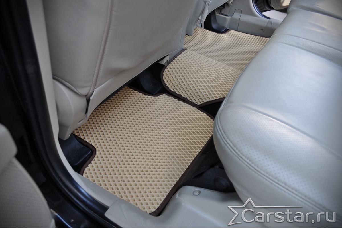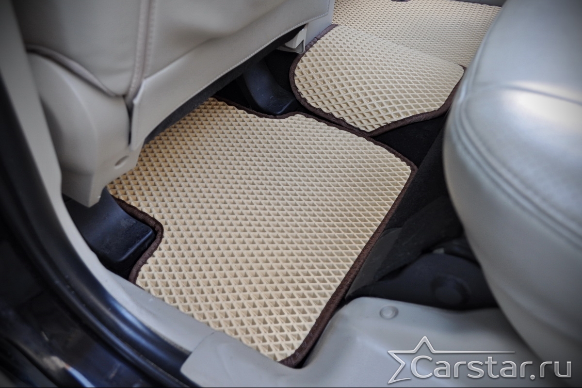 Толщина ковриков EVA составляет 10-12 мм. Глубина ячеек 7-8 мм. Такая толщина ковриков позволяет им служить довольно долго, не протираясь до 3 лет. А благодаря такой глубине ячеек коврик EVA площадью 1 кв.м. способен захватить около 3,5 л жидкости, сохраняя в чистоте вашу обувь и обивку салона.