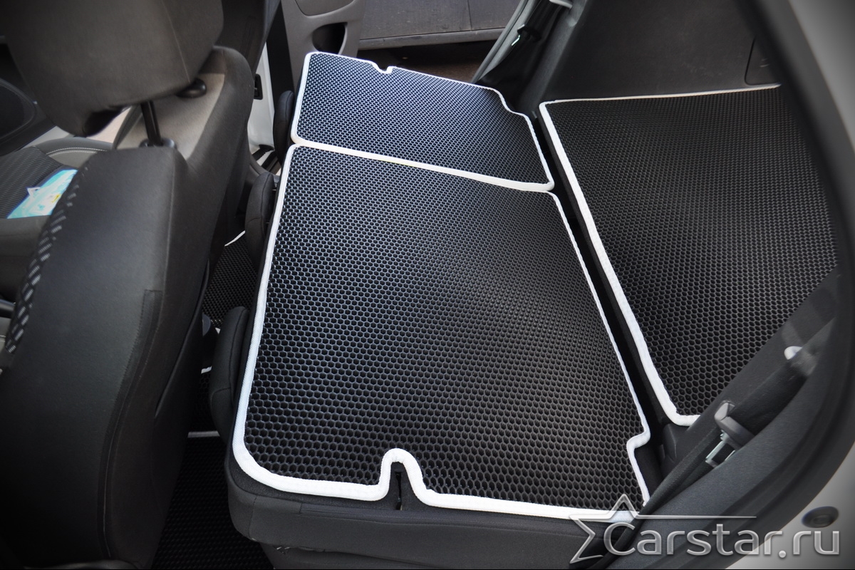 Толщина ковриков EVA составляет 10-12 мм. Глубина ячеек 7-8 мм. Такая толщина ковриков позволяет им служить довольно долго, не протираясь до 3 лет. А благодаря такой глубине ячеек коврик EVA площадью 1 кв.м. способен захватить около 3,5 л жидкости, сохраняя в чистоте вашу обувь и обивку салона.
