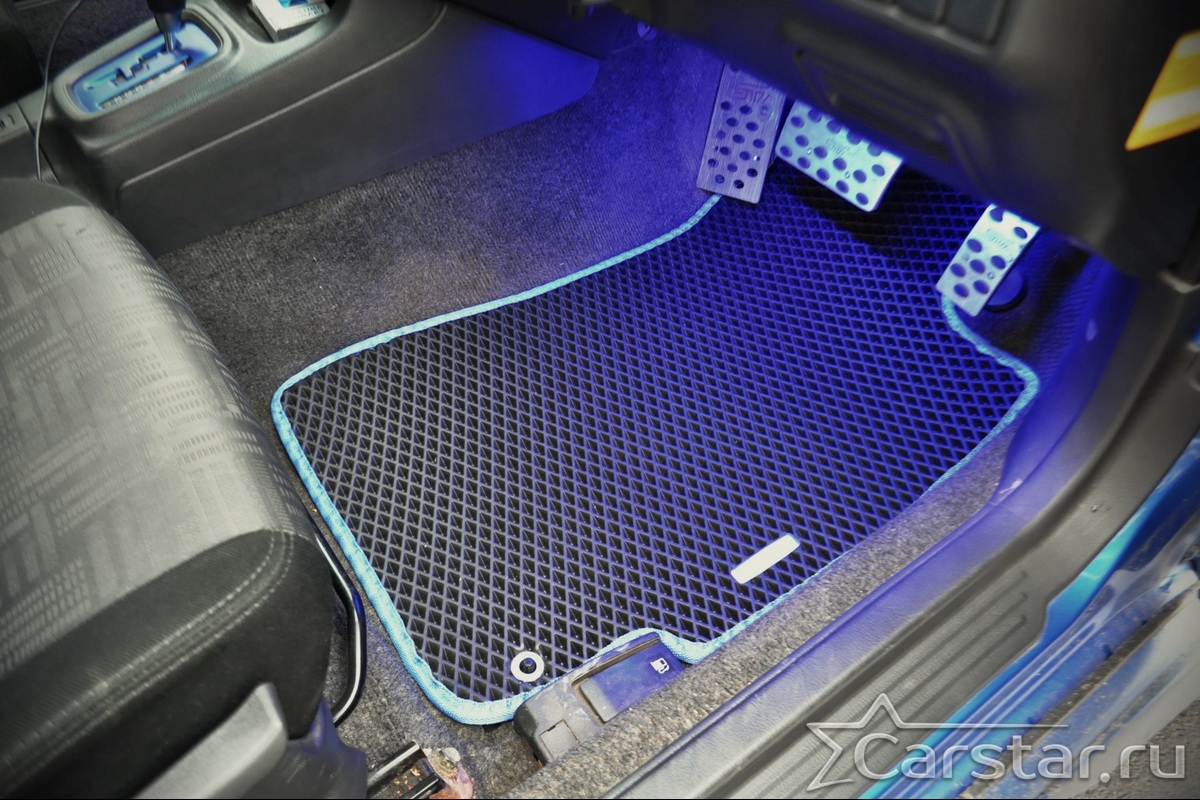 Толщина ковриков EVA составляет 10-12 мм. Глубина ячеек 7-8 мм. Такая толщина ковриков позволяет им служить довольно долго, не протираясь до 3 лет. А благодаря такой глубине ячеек коврик EVA площадью 1 кв.м. способен захватить около 3,5 л жидкости, сохраняя в чистоте вашу обувь и обивку салона.
