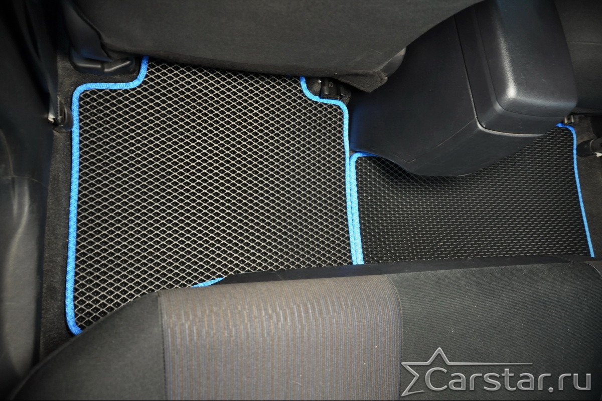 Толщина ковриков EVA составляет 10-12 мм. Глубина ячеек 7-8 мм. Такая толщина ковриков позволяет им служить довольно долго, не протираясь до 3 лет. А благодаря такой глубине ячеек коврик EVA площадью 1 кв.м. способен захватить около 3,5 л жидкости, сохраняя в чистоте вашу обувь и обивку салона.