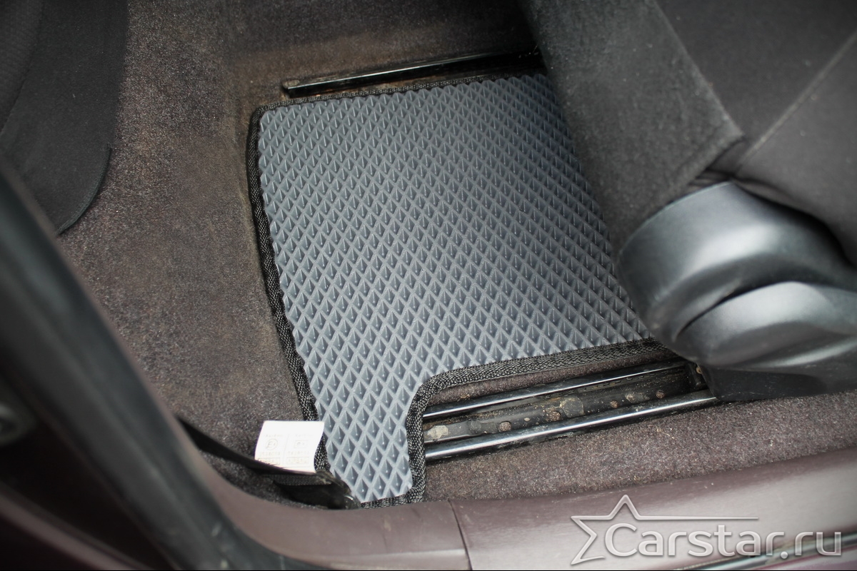 Толщина ковриков EVA составляет 10-12 мм. Глубина ячеек 7-8 мм. Такая толщина ковриков позволяет им служить довольно долго, не протираясь до 3 лет. А благодаря такой глубине ячеек коврик EVA площадью 1 кв.м. способен захватить около 3,5 л жидкости, сохраняя в чистоте вашу обувь и обивку салона.