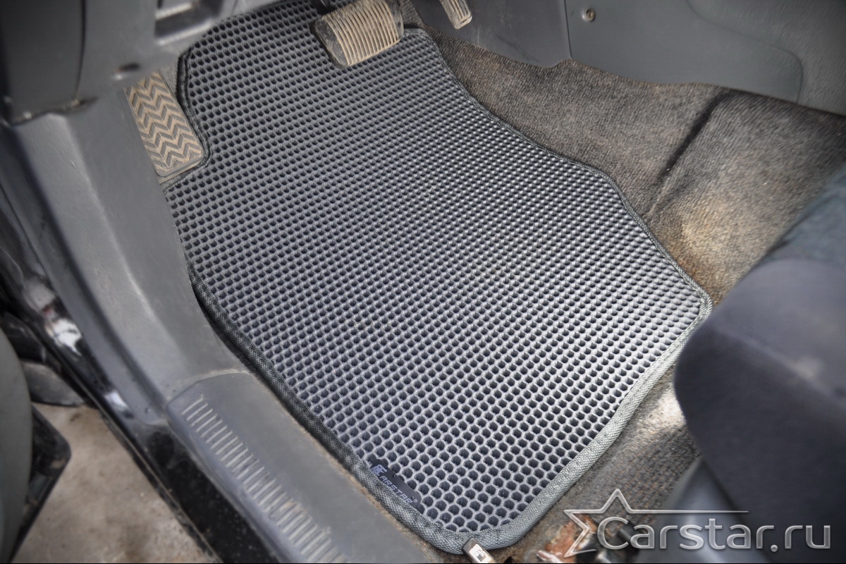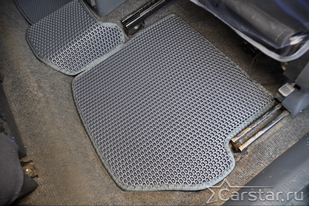 Толщина ковриков EVA составляет 10-12 мм. Глубина ячеек 7-8 мм. Такая толщина ковриков позволяет им служить довольно долго, не протираясь до 3 лет. А благодаря такой глубине ячеек коврик EVA площадью 1 кв.м. способен захватить около 3,5 л жидкости, сохраняя в чистоте вашу обувь и обивку салона.
