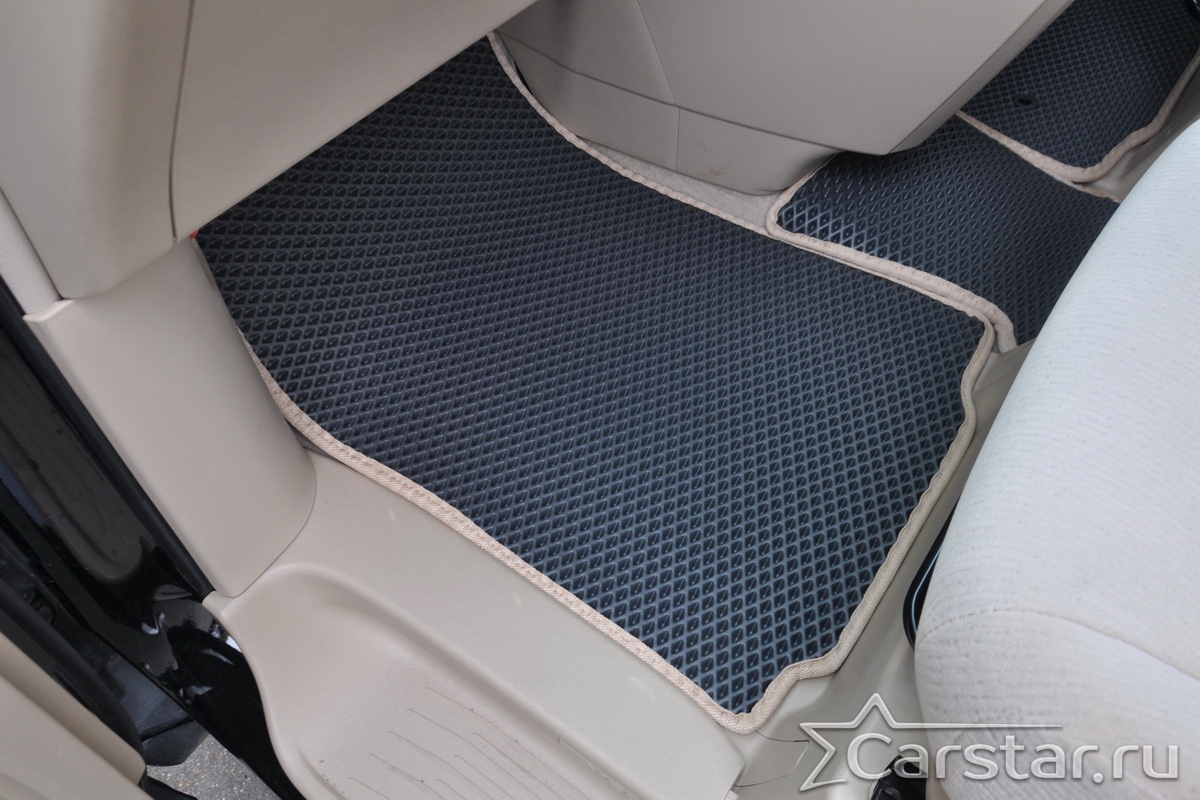 Толщина ковриков EVA составляет 10-12 мм. Глубина ячеек 7-8 мм. Такая толщина ковриков позволяет им служить довольно долго, не протираясь до 3 лет. А благодаря такой глубине ячеек коврик EVA площадью 1 кв.м. способен захватить около 3,5 л жидкости, сохраняя в чистоте вашу обувь и обивку салона.