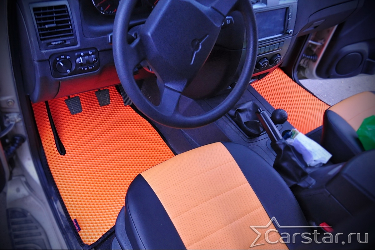 Автомобильные коврики EVA прекрасно подходят для всех существующих марок и моделей авто, здесь вы сможете заказать оптимальный аксессуар любого возможного цвета. По размерам они больше, чем стандартные резиновые коврики, поэтому покрывают максимальную площадь пола в салоне. А двойная система креплений (клипсы и липучки) позволяет надежно зафиксировать коврики в нужном месте.