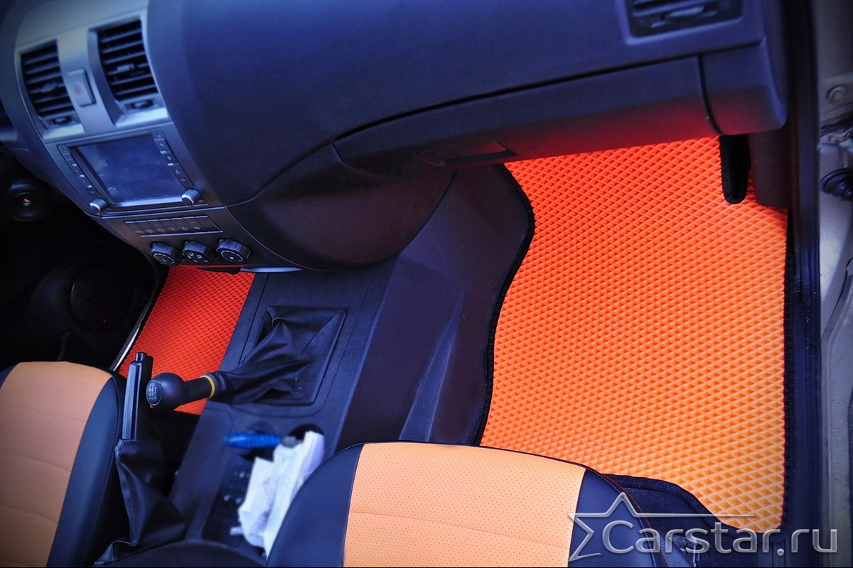 Автоковрики EVA производятся из инновационного экологически чистого материала, обладающего высочайшей износостойкостью, устойчивостью к экстремальным температурам (от +40 С до -40 С) и агрессивным химреагентам. Они в 4 раза легче обычных резиновых аналогов, а чрезвычайно плотная структура обеспечивает им безупречную гидро- и шумоизоляцию!