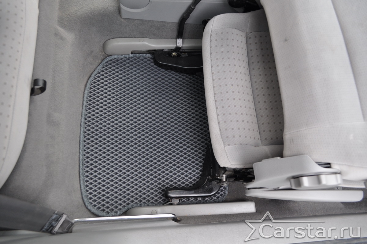 Толщина ковриков EVA составляет 10-12 мм. Глубина ячеек 7-8 мм. Такая толщина ковриков позволяет им служить довольно долго, не протираясь до 3 лет. А благодаря такой глубине ячеек коврик EVA площадью 1 кв.м. способен захватить около 3,5 л жидкости, сохраняя в чистоте вашу обувь и обивку салона.