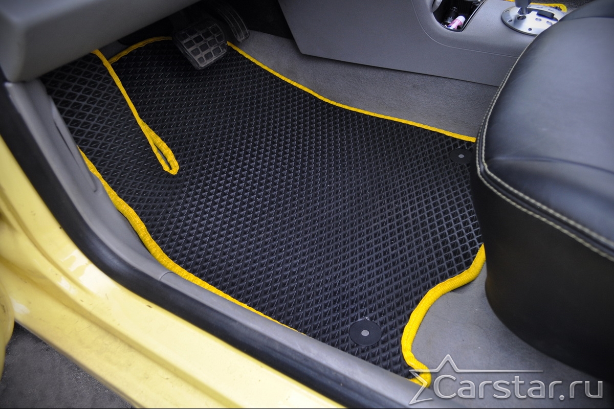 Автомобильные коврики EVA прекрасно подходят для всех существующих марок и моделей авто, здесь вы сможете заказать оптимальный аксессуар любого возможного цвета. По размерам они больше, чем стандартные резиновые коврики, поэтому покрывают максимальную площадь пола в салоне. А двойная система креплений (клипсы и липучки) позволяет надежно зафиксировать коврики в нужном месте.