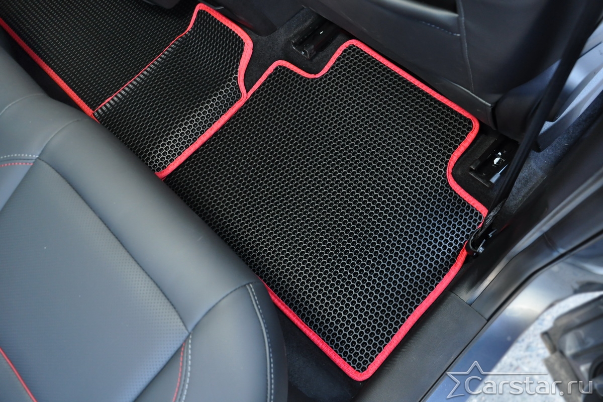 Текстильные коврики надёжно крепятся с помощью оригинальных систем фиксации. Обратная сторона имеет противоскользящее покрытие, что обеспечивает защиту от смещений и безопасность. Максимальное удобство достигается точными лекалами.