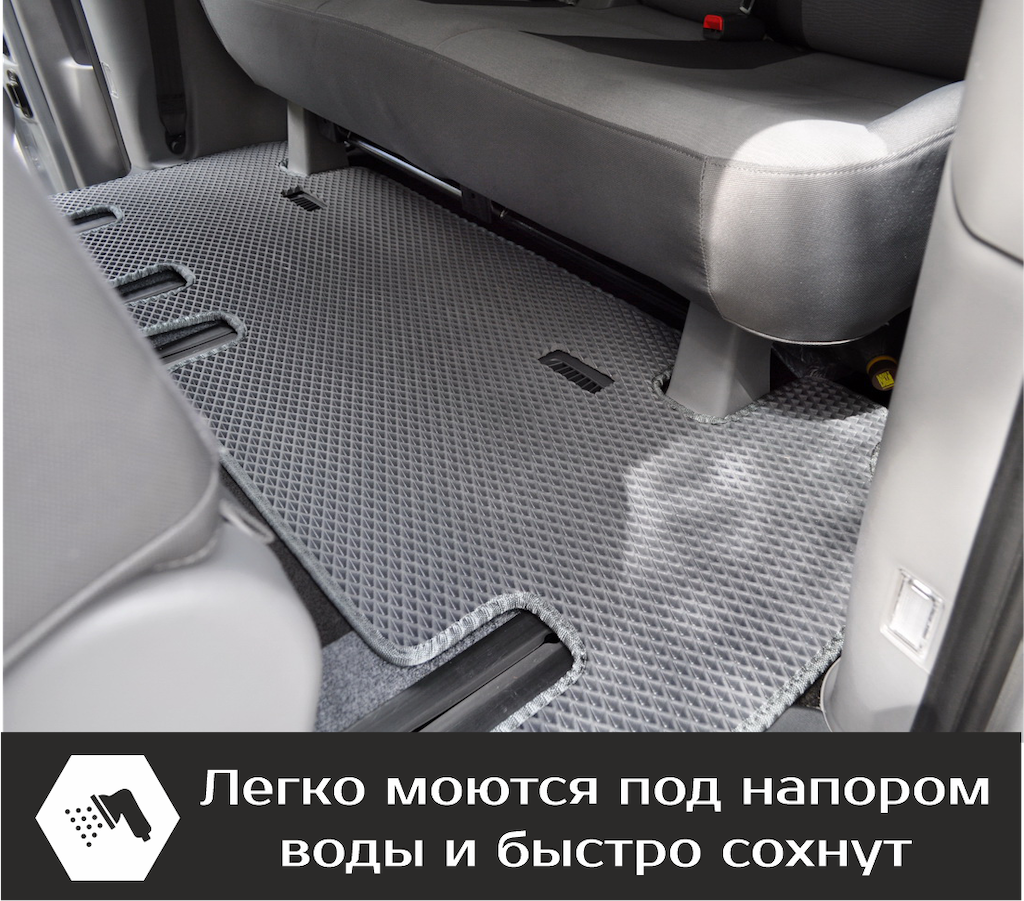 Текстильные коврики надёжно крепятся с помощью оригинальных систем фиксации. Обратная сторона имеет противоскользящее покрытие, что обеспечивает защиту от смещений и безопасность. Максимальное удобство достигается точными лекалами.