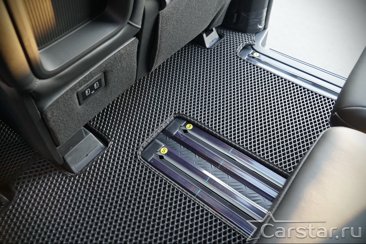 Текстильные коврики надёжно крепятся с помощью оригинальных систем фиксации. Обратная сторона имеет противоскользящее покрытие, что обеспечивает защиту от смещений и безопасность. Максимальное удобство достигается точными лекалами.