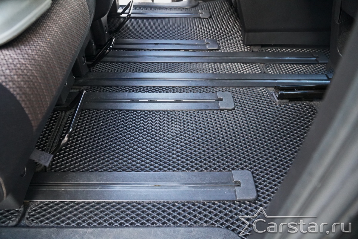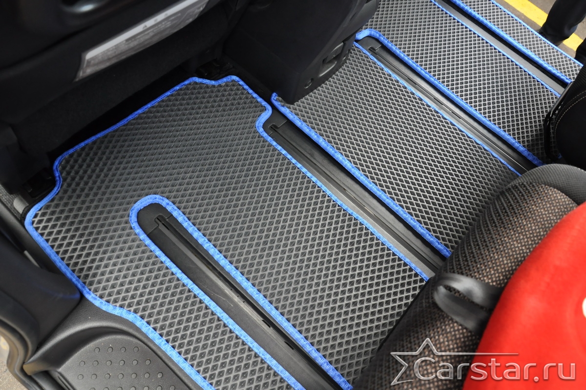 Текстильные коврики надёжно крепятся с помощью оригинальных систем фиксации. Обратная сторона имеет противоскользящее покрытие, что обеспечивает защиту от смещений и безопасность. Максимальное удобство достигается точными лекалами.