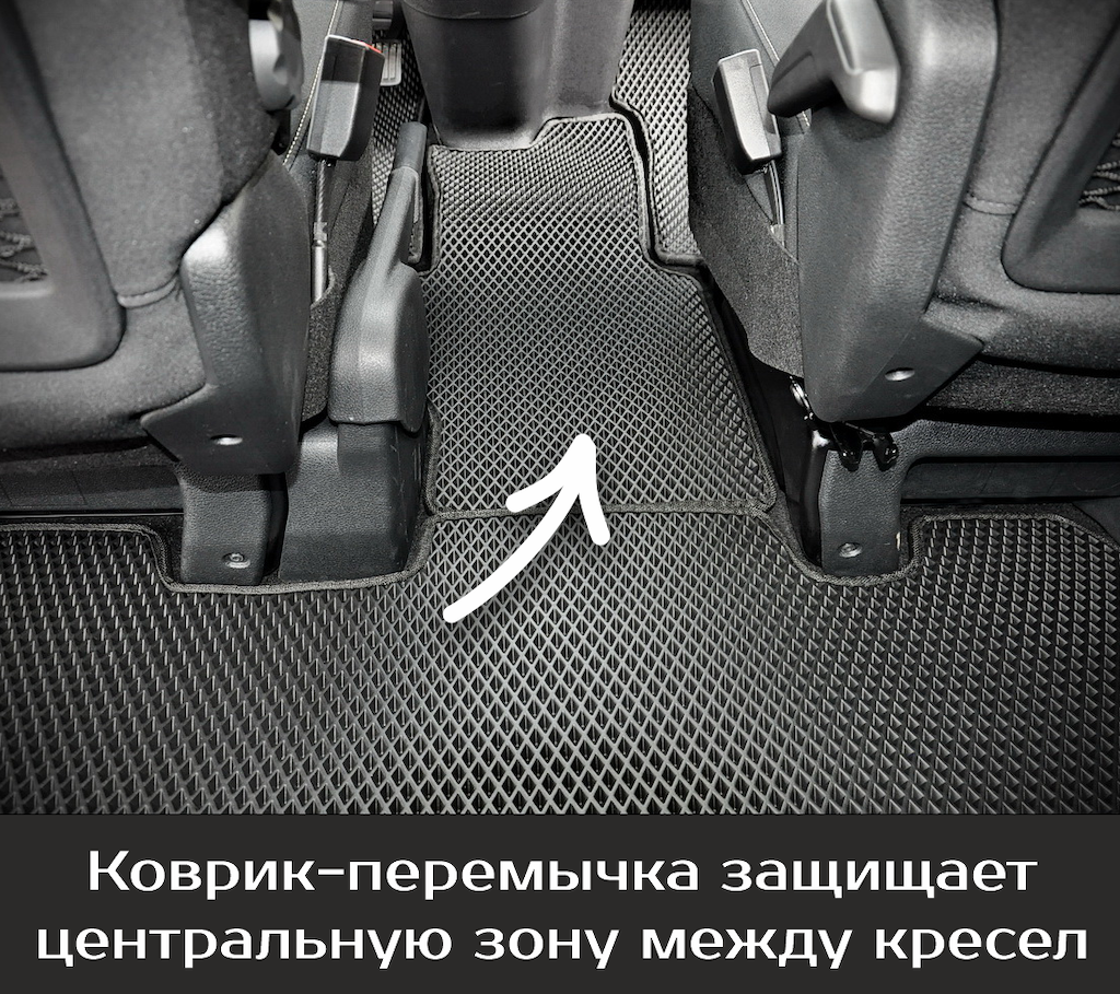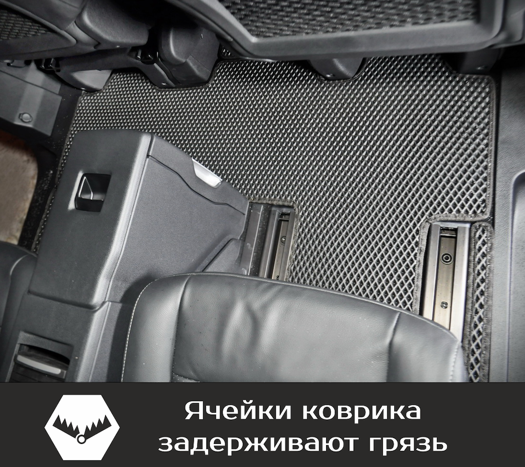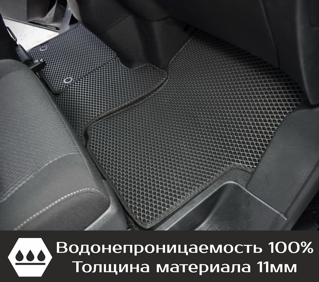 Нижняя часть ковра изготавливается из термопластичной резины с шипами 2-3 мм по всей поверхности, что предотвращает скольжение коврика по салону автомобиля.