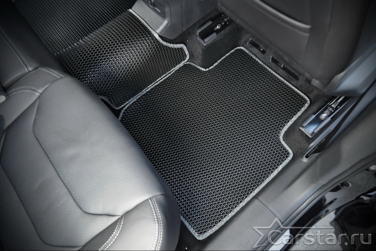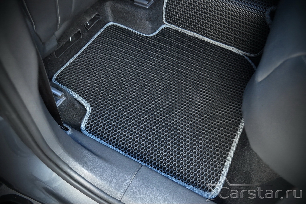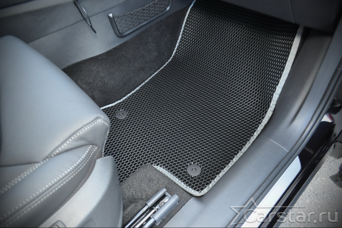 Текстильные коврики надёжно крепятся с помощью оригинальных систем фиксации. Обратная сторона имеет противоскользящее покрытие, что обеспечивает защиту от смещений и безопасность. Максимальное удобство достигается точными лекалами.