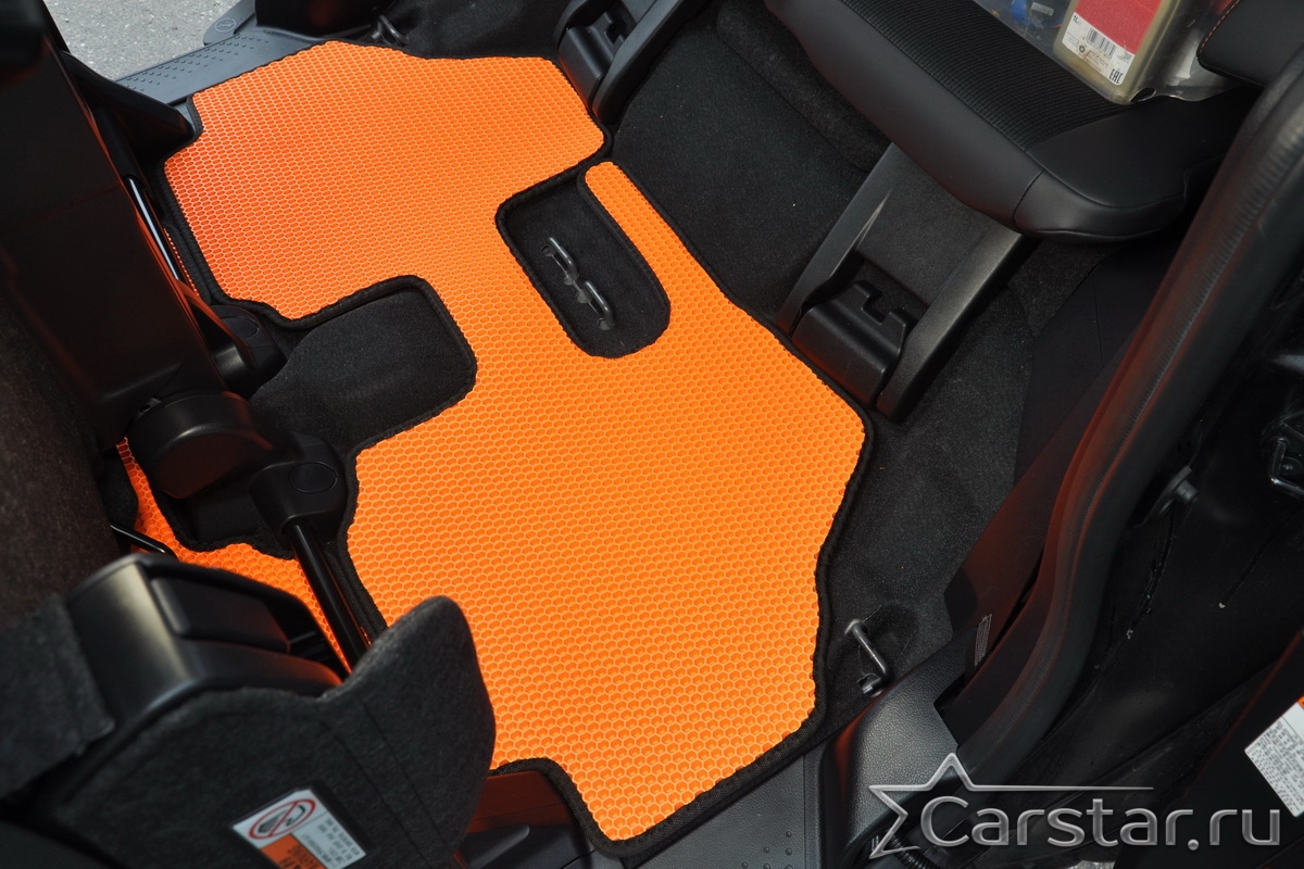 Текстильные коврики надёжно крепятся с помощью оригинальных систем фиксации. Обратная сторона имеет противоскользящее покрытие, что обеспечивает защиту от смещений и безопасность. Максимальное удобство достигается точными лекалами.